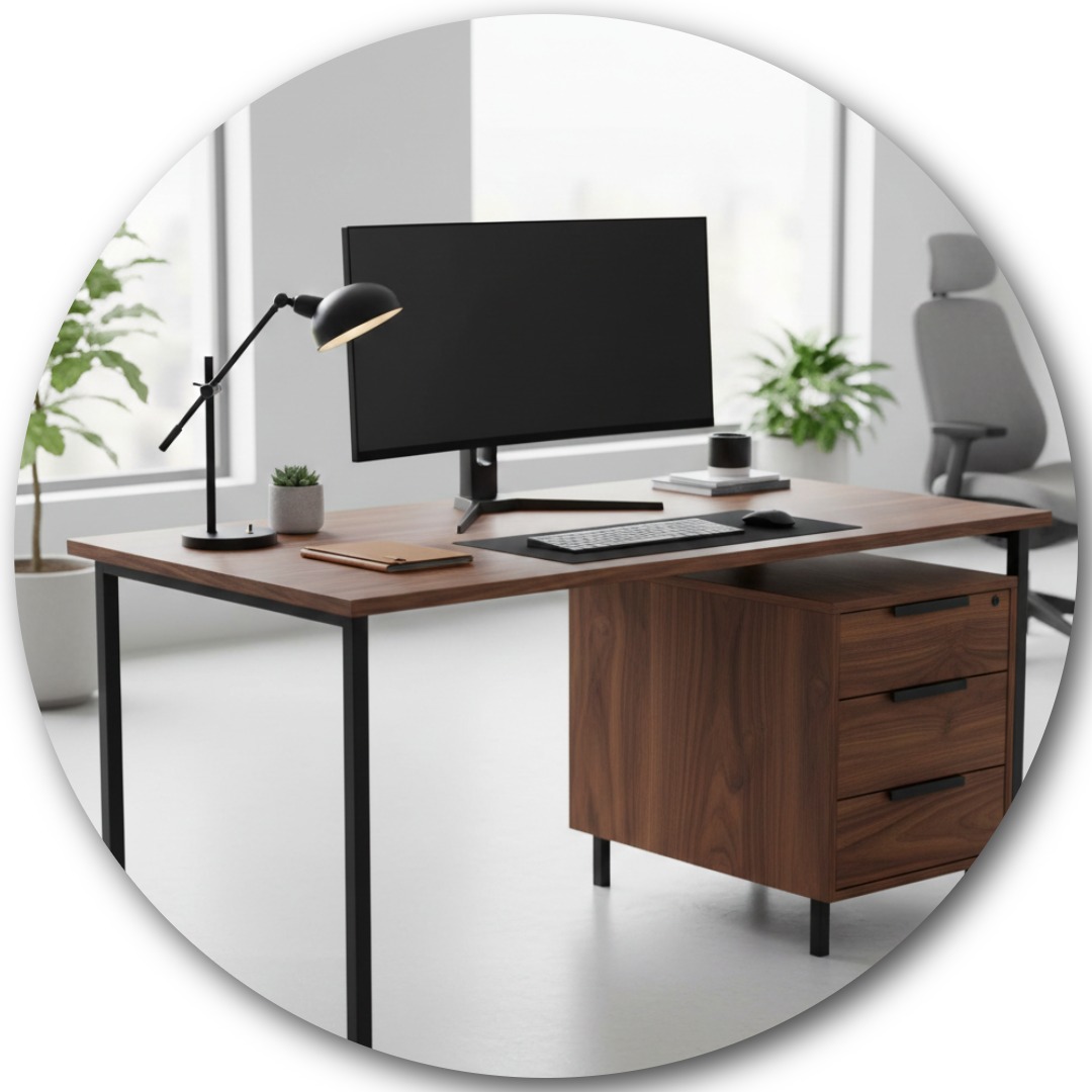 Los Escritorios Cajonera representan una solución equilibrada: combinan funcionalidad e imagen. Están fabricados con materiales de calidad industrial que ofrecen durabilidad, además de resistencia mecánica. El acabado en chapa de madera aporta un aspecto sobrio, contemporáneo; además, se integra con facilidad en estaciones de trabajo, oficinas técnicas o áreas de producción.